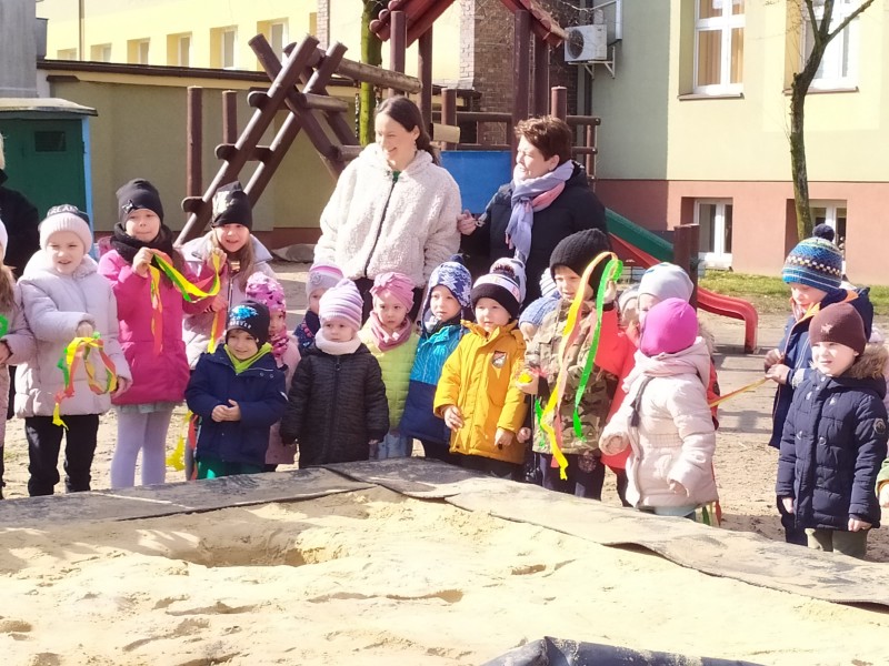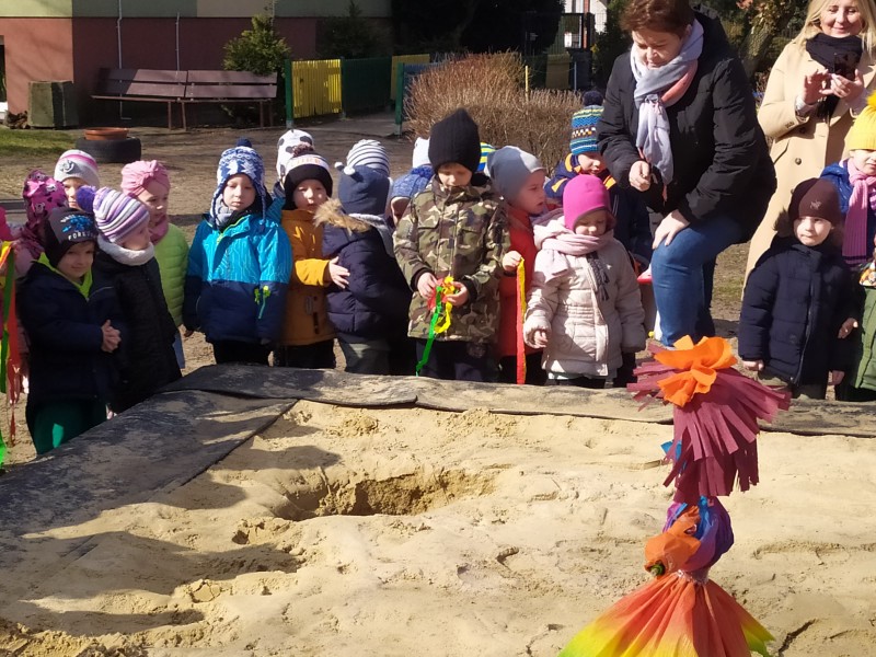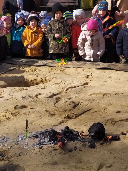 DziĹ uroczyĹcie poĹźegnaliĹmy PaniÄ ZimÄ - na przedszkolnym placu zabaw spaliliĹmy MarzannÄ. ByliĹmy przy tym bardzo ostroĹźni, bo wiadomo - z ogniem nie ma ĹźartĂłw!