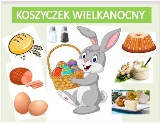 3. Przyjrzyj siÄ obrazkowi i powiedz, co powinno siÄ znaleĹşÄ w wielkanocnym koszyczku.