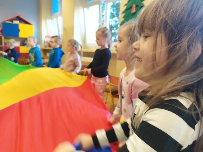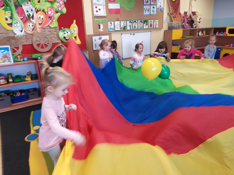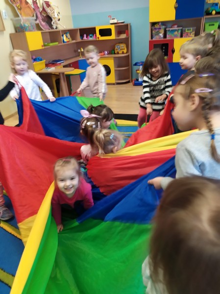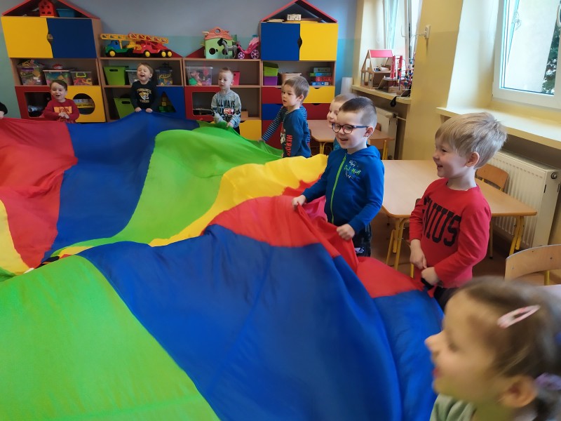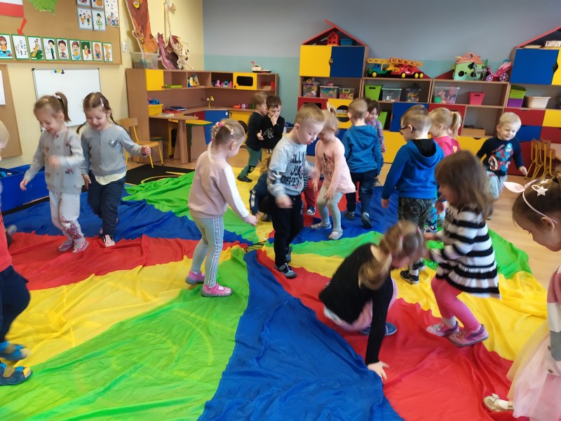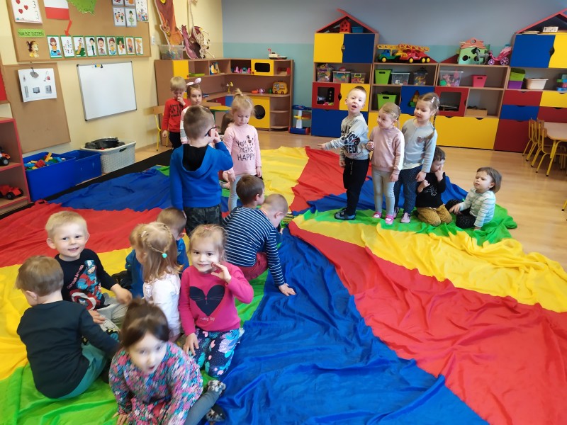OpĂłcz wesoĹej zabawy podczas kaĹźdych zajÄÄ z chustÄ animacyjnÄ :