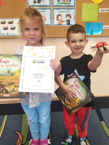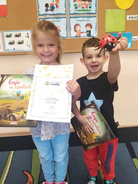Jeszcze przed wakacjami trzy nasze Witaminki: Hania, Nela oraz Jasiu wykonaĹy wĹasnymi rÄ czkami piÄknÄ biedronkÄ. Teraz nasi laureacji odebrali za biedronkÄ zasĹuĹźone nagrody!