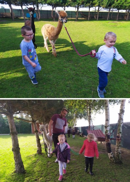Dnia 27 wrzeĹnia Witaminki wyjechaĹy do RadĹowa na spotkanie z alpakami. WraĹźenia byĹy nie do opisania, a najwaĹźniejsze cele osiÄ gniÄte: dzieci nawiÄ zaĹy ze zwierzÄtami pozytywny kontakt, dotykaĹy ich miÄkkiego runa, gĹaskaĹy, przytulaĹy, wyprowadzaĹy na spacer, karmiĹy... radoĹÄ byĹa ogromna. Alpaki teĹź wyglÄ daĹy na caĹkiem zadowolone :)