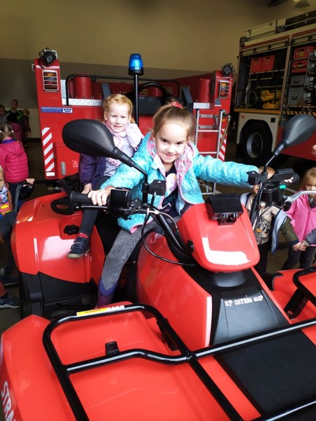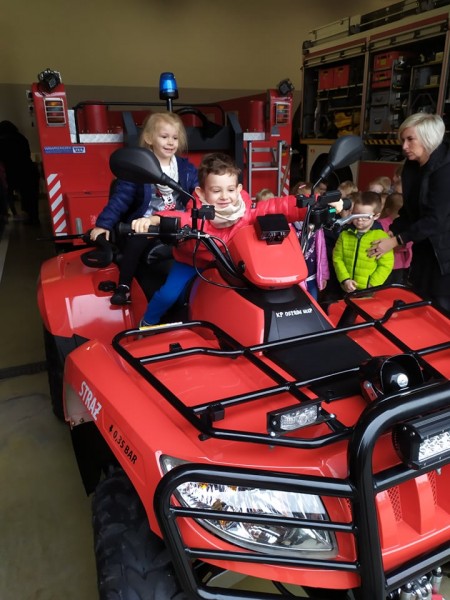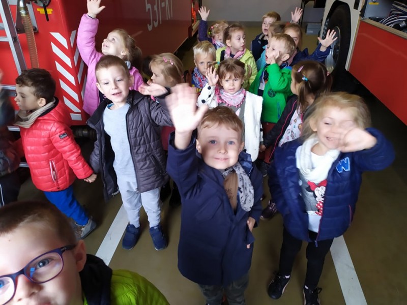 Przedszkolaki poznaĹy sprzÄt jaki jest na wyposaĹźeniu wozĂłw straĹźackich, zwiedziĹy garaĹźe peĹne piÄknych, lĹniacych aut, byĹy Ĺwiadkami alarmu i szykowania siÄ straĹźakĂłw do akcji. ByĹy rĂłwnieĹź w pomieszczeniu gdzie straĹźacy ÄwiczÄ przygotowujÄ c siÄ do akcji: byĹo ciemno, byĹ dym, haĹas.... mimo niebezpieczeĹstwa, z ktĂłrym codziennie stykajÄ siÄ straĹźacy, teraz prawie kaĹźda Witaminka chce nim zostaÄ gdy doroĹnie!