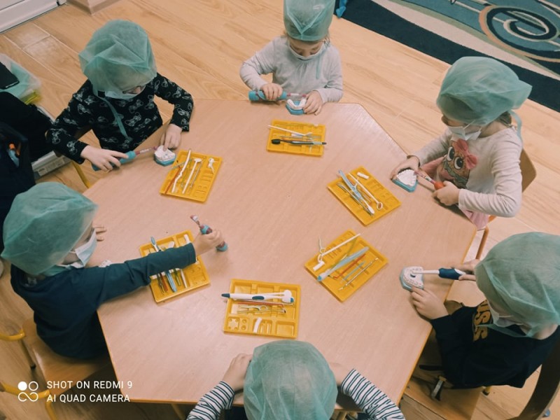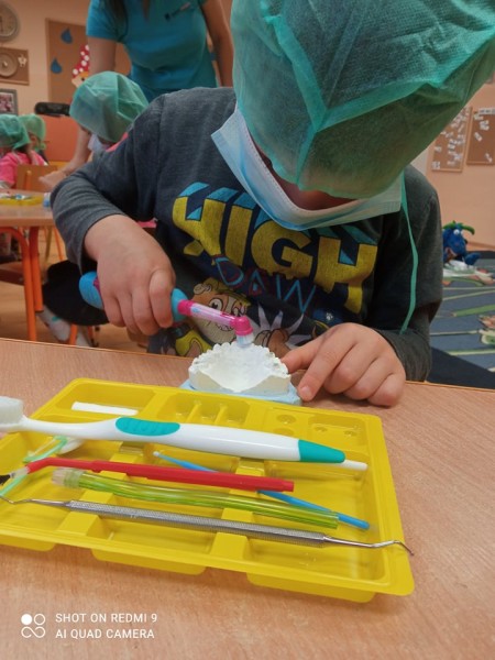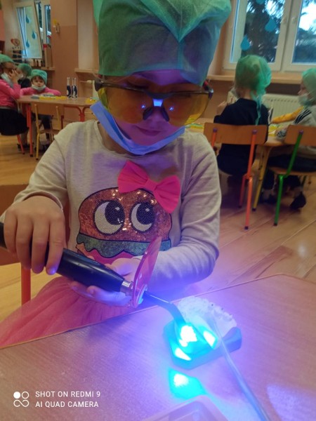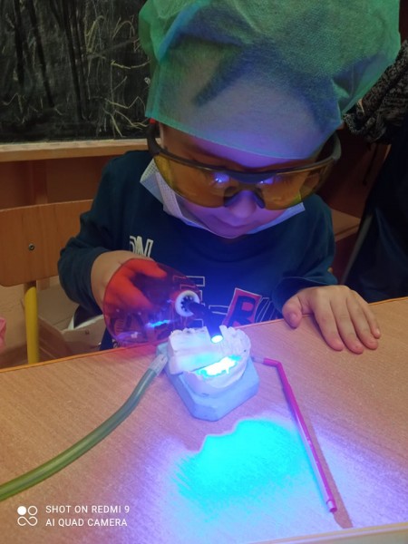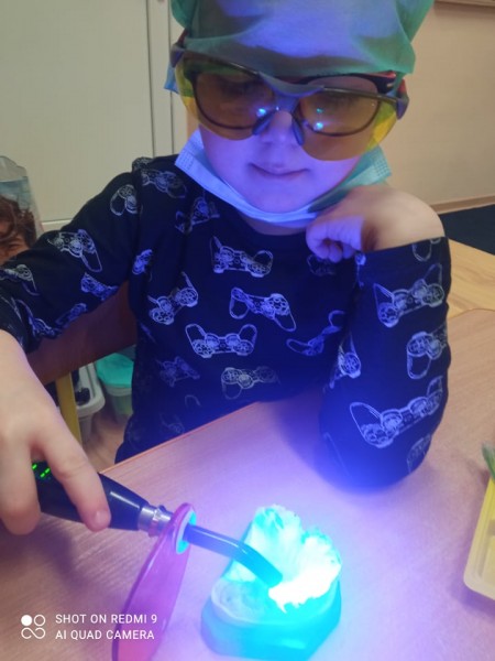 Dnia 23 listopada dzieci uczestniczyĹy w warsztatach stomatologicznych. Na gipsowych modelach szczÄk miaĹy okazjÄ "wyleczyÄ" zÄ bki. Dzieci wzbogaciĹy siÄ o bardzo fajnÄ wiedzÄ, ktĂłra na pewno zaprocentuje przy najbliĹźszej wizycie u dentysty.