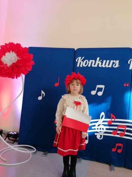Nasze przedszkole reprezentowaĹa Marcelina Wasilewska, ktĂłra z wielkim zaangaĹźowaniem i dumÄ zaĹpiewaĹa piosenkÄ