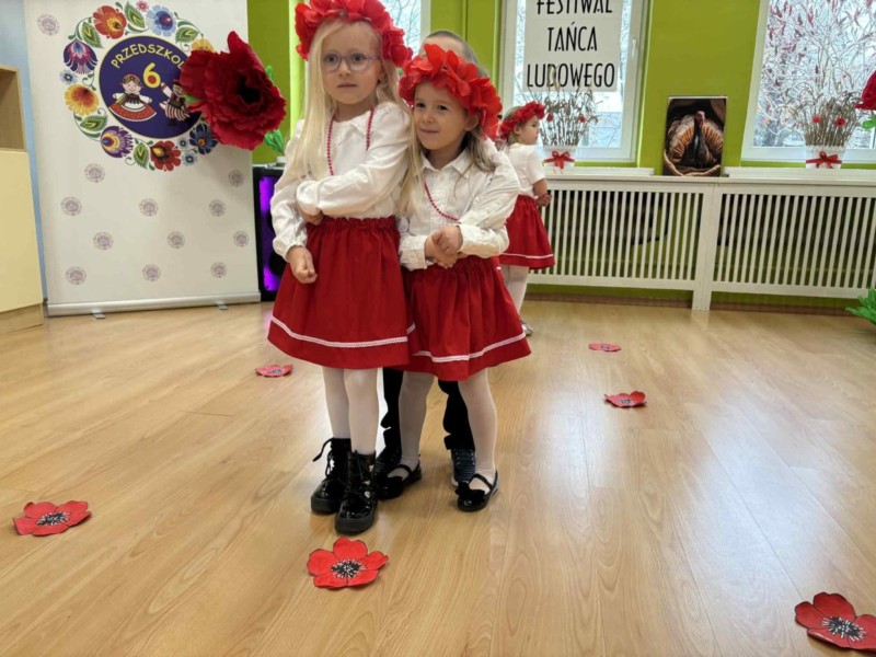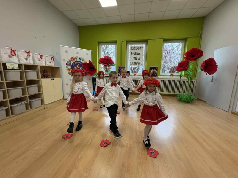 DziewiÄcioro dzieci z naszego przedszkola, z Grupy FioĹki — Gniewko, Helenka, Oliwka, Maksymilian, Marcelina W., Marcelina S., Piotrek, Zuzia i Ania — wziÄĹo udziaĹ w miÄdzyprzedszkolnym konkursie organizowanym przez Przedszkole nr 6 w Ostrowie Wielkopolskim. Wydarzenie odbyĹo siÄ pod tytuĹem „Przedszkolny Festiwal TaĹca Ludowego”.