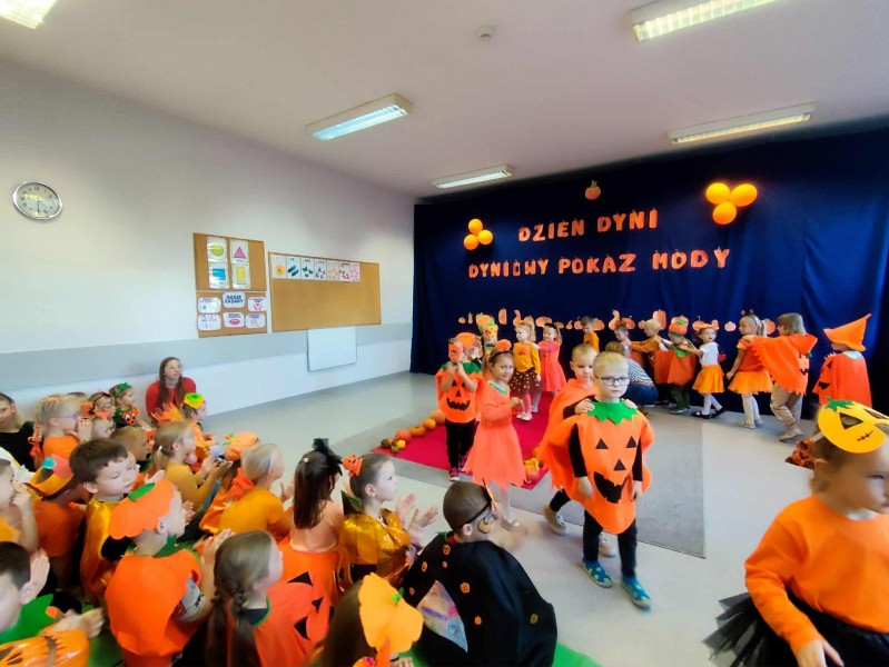Dzieci zaprezentowaĹy siÄ w niezwykle pomysĹowych strojach przygotowanych z pomocÄ rodzicĂłw. Na wybiegu krĂłlowaĹy dyniowe sukienki i kombinezony, kapelusze i pelerynki ozdobione jesiennymi liĹÄmi.