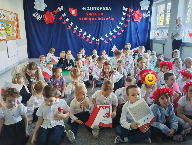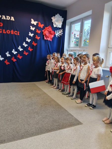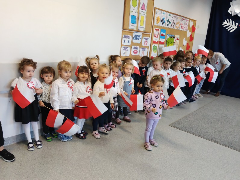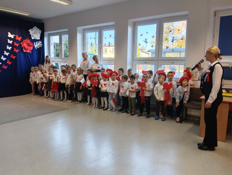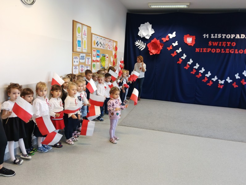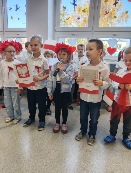 "SzkoĹa do Hymnu" - o godzinie 11:11 dzieci i pracownicy przedszkola przystÄ piĹy do uroczystego odĹpiewania Hymnu.
