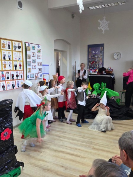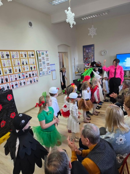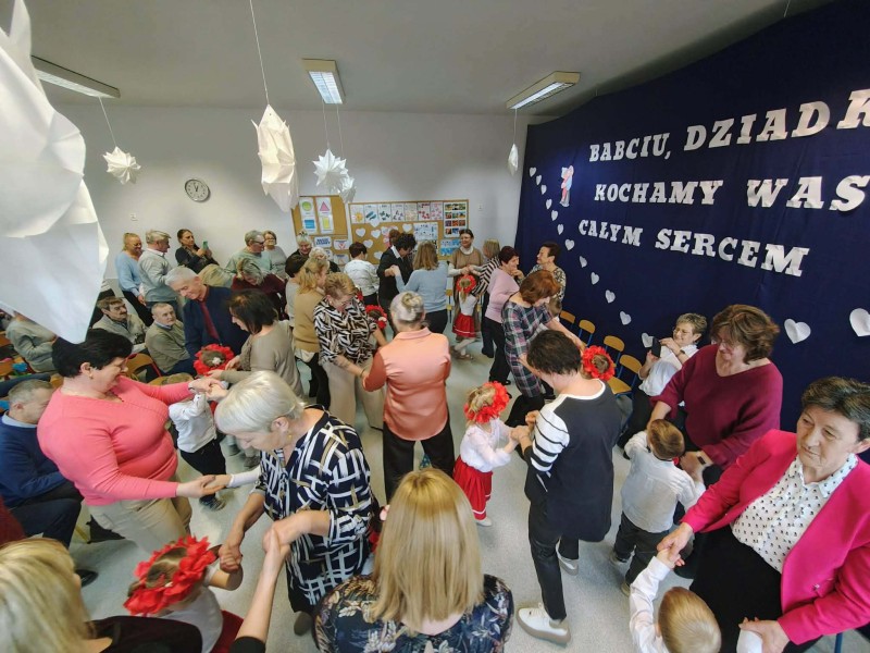 Przedszkolaki goĹciĹy swoje Babcie oraz DziadkĂłw na uroczystoĹci z okazji ich ĹwiÄta. W kaĹźdej z grup przygotowaĹy program artystyczny: recytowaĹy wiersze, ĹpiewaĹy piosenki, taĹczyĹy oraz wrÄczyĹy wĹasnorÄcznie wykonane laurki i drobne upominki.