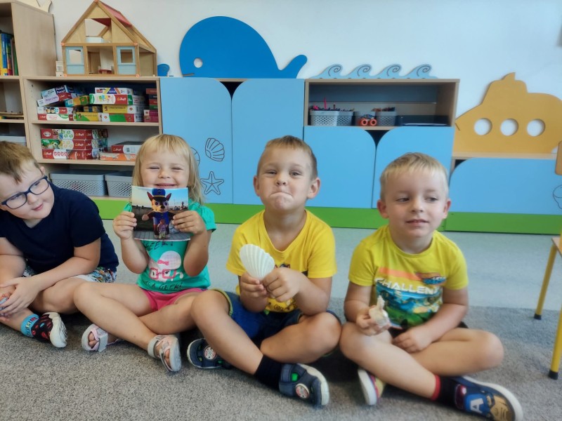 PodziwialiĹmy fotografie i pamiÄ tkowe magnesy, sĹuchaliĹmy szumu morza w przyniesionych muszelkach i na moment przenieĹliĹmy siÄ w miejsca wakacyjnych przygĂłd. Podczas zajÄÄ doskonaliliĹmy umiejÄtnoĹci wypowiadania siÄ na forum grupy, czekania na swojÄ kolej oraz koncentracji uwagi ;).
