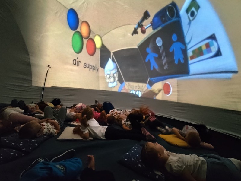 Planetarium w przystÄpny oraz interesujÄ cy sposĂłb przybliĹźyĹo dzieciom zjawiska astronomiczne i geograficzne zachodzÄ ce na niebie.