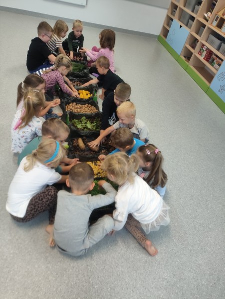 PoczÄ tkowo Bratki eksplorowaĹy jÄ dĹoĹmi, by rozwijaÄ zmysĹ dotyku, usprawniaÄ motorykÄ maĹÄ i wzmacniaÄ ĹwiadomoĹÄ ciaĹa. NastÄpnie wszystkie dzieci zdjÄĹy buciki, a chÄtne nawet skarpetki đ