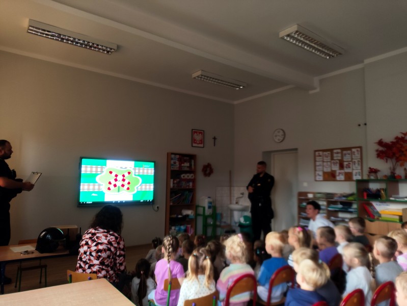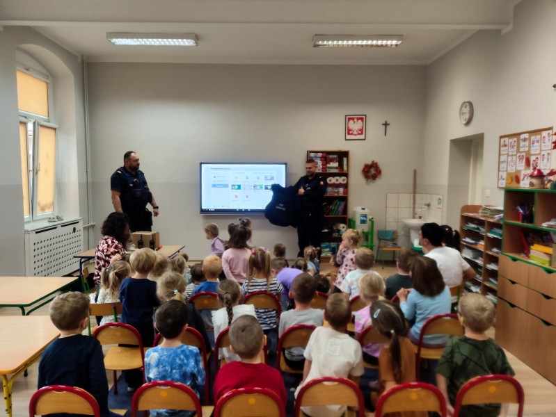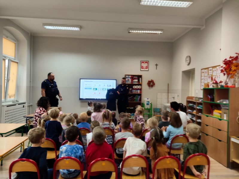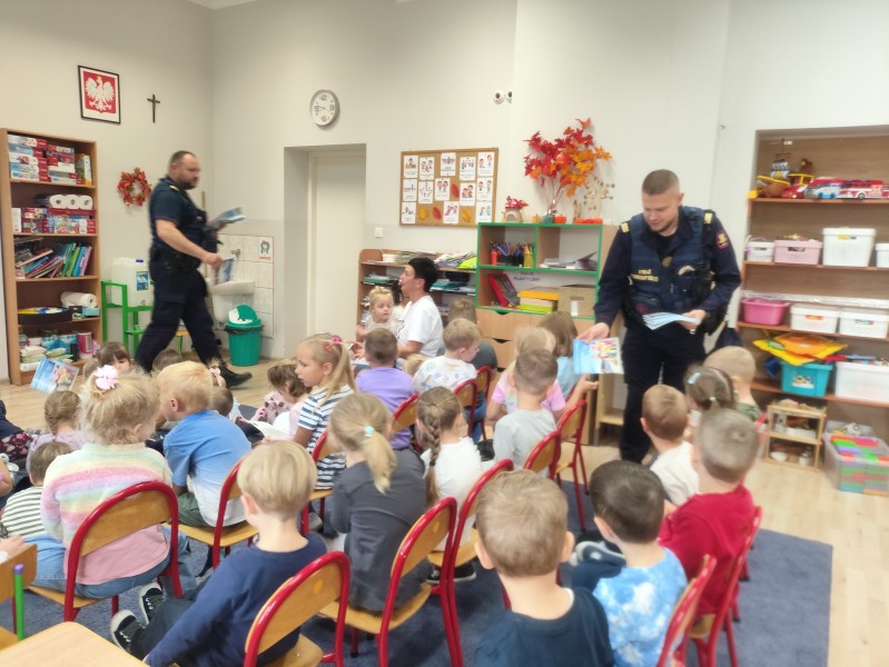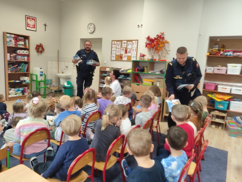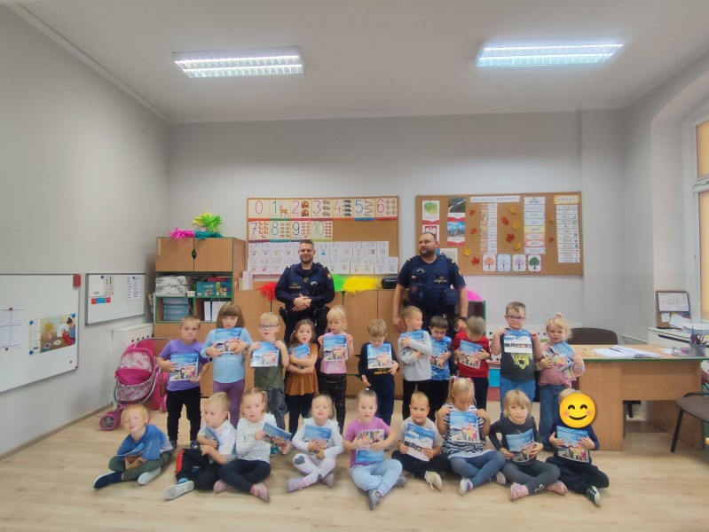 Na zakoĹczenie dzieci otrzymaĹy niespodzianki oraz podziÄkowaĹy Funkcjonariuszom za spotkanie wrÄczajÄ c ksiÄ ĹźeczkÄ ze swoimi pracami ;).