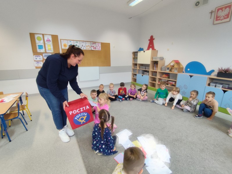 NajpiÄkniej dziÄkujemy mamie Stasia za poĹwiÄcony czas, zapoznanie dzieci ze specyfikÄ pracy listonosza oraz znaczki pocztowe i upominki đˇđťđş