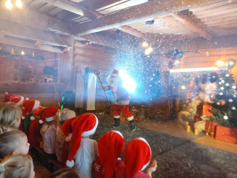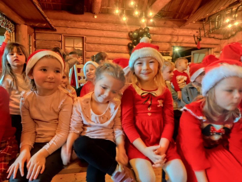 9.12.2025 najmłodsze grupy z naszego przedszkola - Stokrotki i Bratki wybrały się na wycieczkę do magicznej Chatki Świętego Mikołaja.