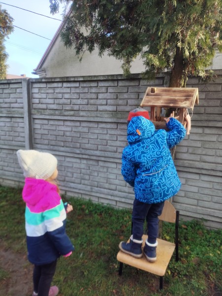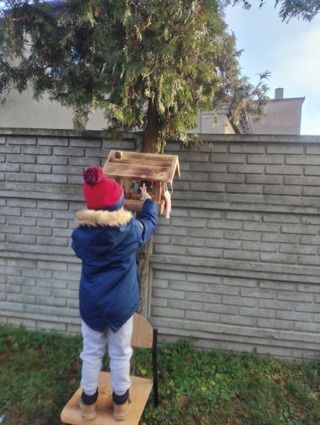 15 zadanie z kalendarza adwentowego wykonane ;) Nasze Bratki uzupeĹniĹy ziarenka w przedszkolnym karmniku.