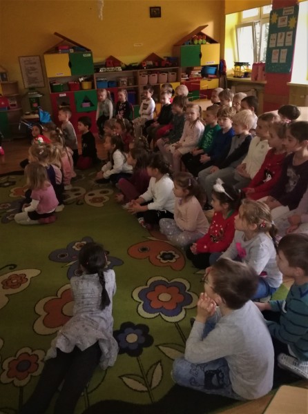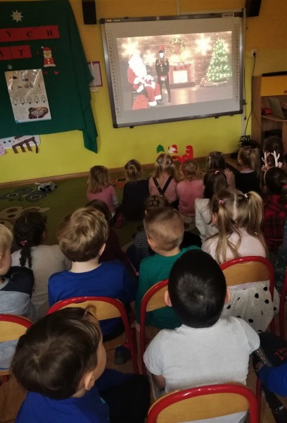 WspĂłlnie z przedszkolakami innych gruo oglÄ daliĹmy film o Mikolaju.