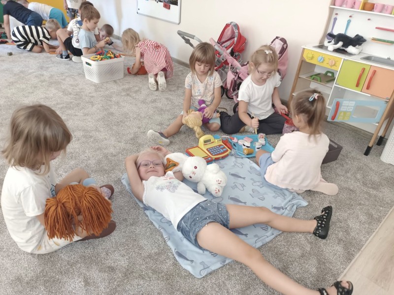 Nowa sala - ĹwieĹźo wymalowana, nowy piÄkny dywan, nowe zabawki. RadoĹÄ dzieci