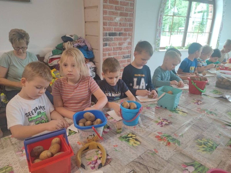 22 wrzeĹnia (poniedziaĹek) grupa „FioĹki” i grupa „Maczki” wybraĹy siÄ na wycieczkÄ do Chlebowej Chaty w Mikstacie-Komorowie, aby wspĂłlnie ĹwiÄtowaÄ DzieĹ Ziemniaka. Na poczÄ tek dzieci udaĹy siÄ na pole, gdzie samodzielnie zbieraĹy ziemniaki. KaĹźde z nich umieszczaĹo swoje zbiory w maĹym wiadereczku, ktĂłre po powrocie mogĹo zabraÄ do domu. KolejnÄ atrakcjÄ byĹo owijanie ziemniakĂłw w foliÄ i pieczenie ich w ognisku. Po wesoĹych zabawach na ĹwieĹźym powietrzu przyszedĹ czas na degustacjÄ przygotowanych smakoĹykĂłw. Przedszkolaki miaĹy okazjÄ sprĂłbowaÄ ziemniakĂłw z ogniska, gotowanych ziemniakĂłw, kieĹbasek, gziki i maseĹka, oraz swojskiego chleba.