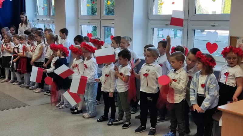 DziĹ, 7 listopada, w naszym przedszkolu obchodziliĹmy ĹwiÄto Odzyskania NiepodlegĹoĹci. O godzinie 11:11 caĹe przedszkole wraz z pracownikami uroczyĹcie odĹpiewaĹo hymn Polski. NastÄpnie kaĹźda z grup zaprezentowaĹa wiersze i piosenki o tematyce patriotycznej, wprowadzajÄ