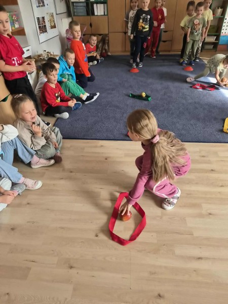 26 wrzeĹnia w naszym przedszkolu obchodziliĹmy DzieĹ JabĹka. Z tej okazji spotkaliĹmy siÄ z grupÄ Maczki, z ktĂłrÄ wspĂłlnie braliĹmy udziaĹ w róşnych konkurencjach sportowych z wykorzystaniem jabĹek. Dzieci poznaĹy znaczenie tego ĹwiÄta i dowiedziaĹy siÄ, dlaczego jabĹka sÄ tak waĹźne w naszej diecie.