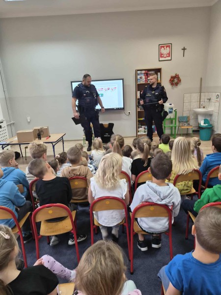 Na zakoĹczenie dzieci otrzymaĹy niespodzianki oraz podziÄkowaĹy Funkcjonariuszom za spotkanie wrÄczajÄ c ksiÄ ĹźeczkÄ ze swoimi pracami ;).