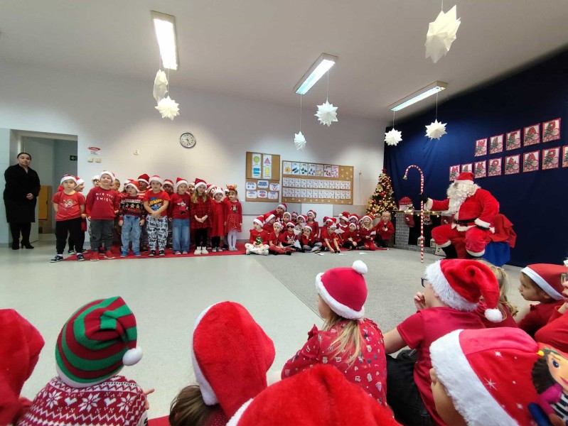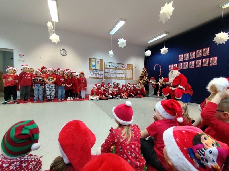 5 grudnia nasze przedszkole odwiedziĹ ĹwiÄty MikoĹaj. Dzieci z ogromnym zaciekawieniem i radoĹciÄ czekaĹy na jego pojawienie siÄ. Kiedy MikoĹaj wszedĹ do sali, dzieci powitaĹy go uĹmiechy, piosenki i gromkie: "Ho,ho,ho". KaĹźde dziecko miaĹo okazjÄ porozmawiaÄ z MikoĹajem, opowiedzieÄ o swoich marzeniach oraz odebraÄ prezent.