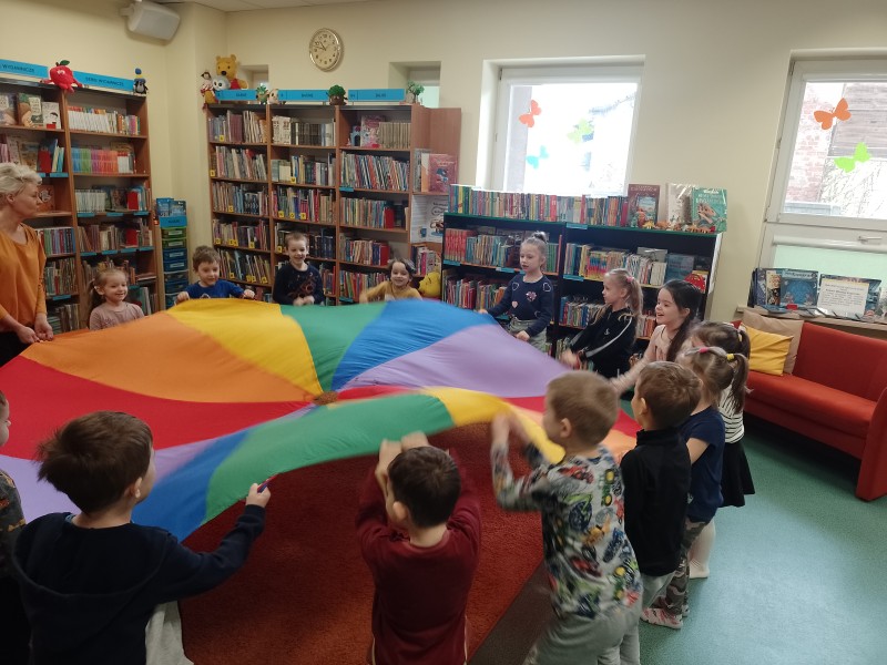 ByĹa takĹźe wspĂłlna zabawa z chustÄ animacyjnÄ oraz kolorowanie, a na zakoĹczenie mogĹy pooglÄ daÄ ksiÄ Ĺźki i pobawiÄ siÄ w kÄ ciku zabawek.