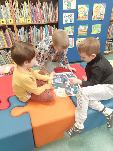 9 marca Stokrotki odwiedziĹy bibliotekÄ. PoznaĹy zasady wypoĹźyczania ksiÄ Ĺźek oraz miaĹy okazjÄ posĹuchaÄ opowiadania o Koci Kici.