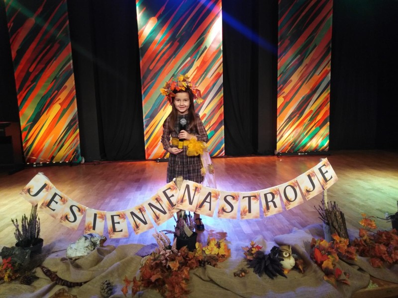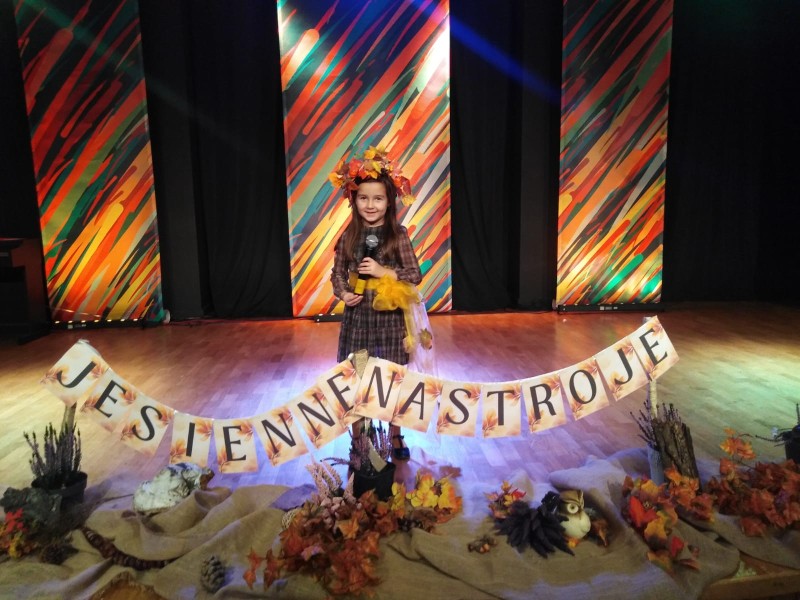 Marysia WoĹşnica reprezentowaĹa nasze przedszkole w konkursie wokalnym "Jesienne nastroje". Na scenie MĹodzieĹźowego Domu Kultury zaprezentowaĹa piosenkÄ pt.: Jesienna moda.