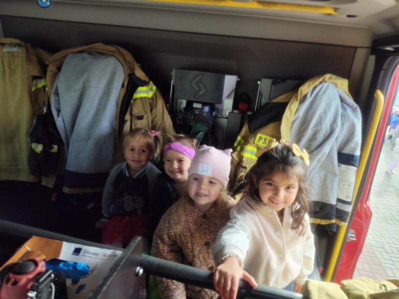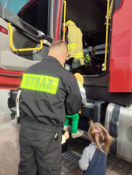 Stokrotki wziÄĹy udziaĹ w pierwszej prĂłbnej ewakuacji i spisaĹy siÄ na medal, a w nagrodÄ mogĹy wejĹÄ do wozu straĹźackiego.