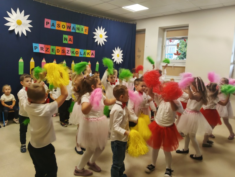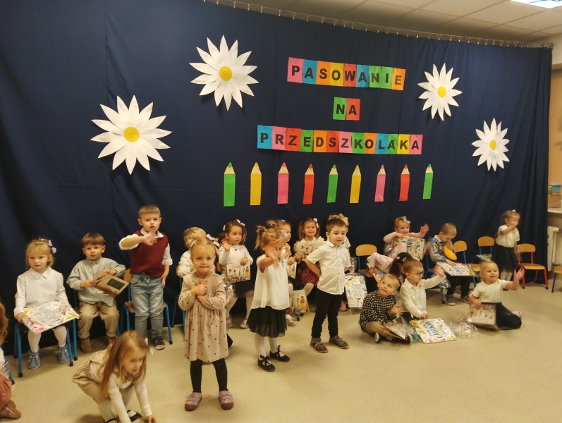 Po pierwszym publicznym wystÄpie pani dyrektor Agnieszka Brodala pasowaĹa kaĹźde dziecko na przedszkolaka i wspĂłlnie z przedstawicielem Rady RodzicĂłw p. SmÄtek wrÄczyĹy dzieciom pamiÄ tkowy dyplom i upominek.