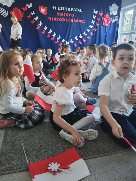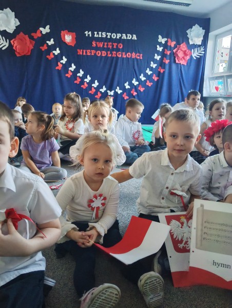 "SzkoĹa do Hymnu" - o godzinie 11:11 dzieci i pracownicy przedszkola przystÄ piĹy do uroczystego odĹpiewania Hymnu.