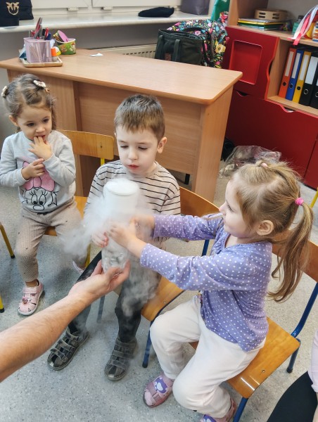 MiaĹy okazjÄ sprawdziÄ wĹaĹciwoĹci suchego lodu oraz ciekĹego azotu. ByĹ spacer po chmurach, wulkan z piany, czarodziejski balon oraz przysmaki z kuchni molekularnej - smocze chrupki, dymiÄ ce soczki i truskawkowe lody.