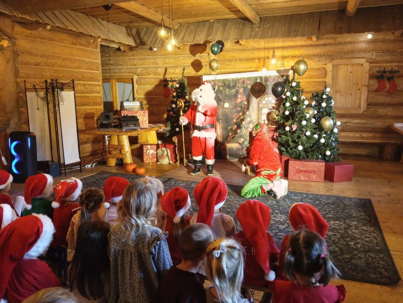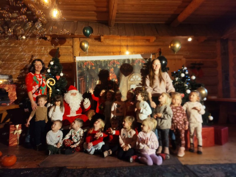 9.12.2025 najmĹodsze grupy z naszego przedszkola - Stokrotki i Bratki wybraĹy siÄ na wycieczkÄ do magicznej Chatki ĹwiÄtego MikoĹaja.