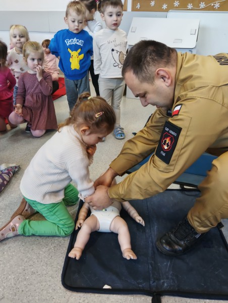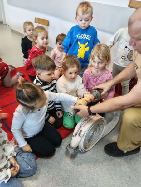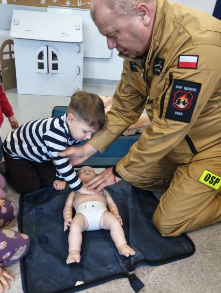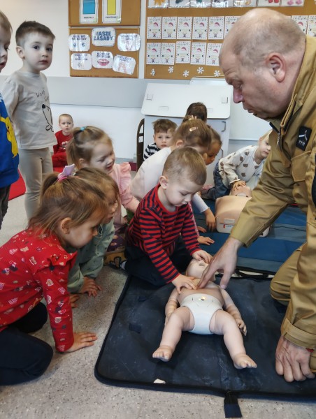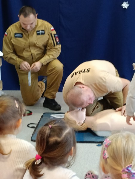 Spotkanie ze straĹźakami, ktĂłrzy przybliĹźyli nam swojÄ ciÄĹźkÄ pracÄ, pokazali elementy wyposaĹźenia oraz wspĂłlnie przeÄwiczyliĹmy udzielanie pierwszej pomocy.