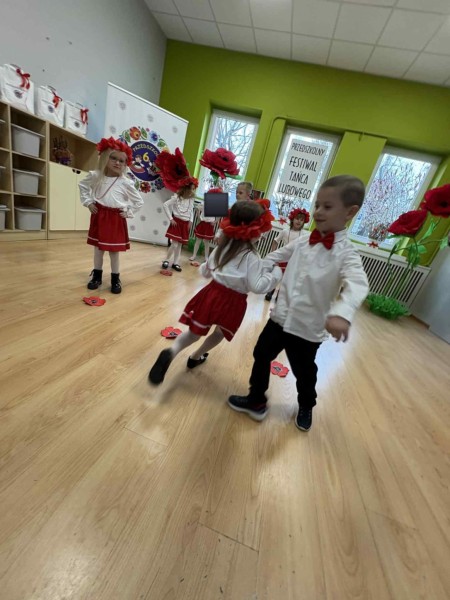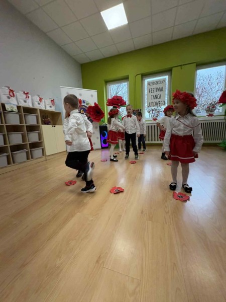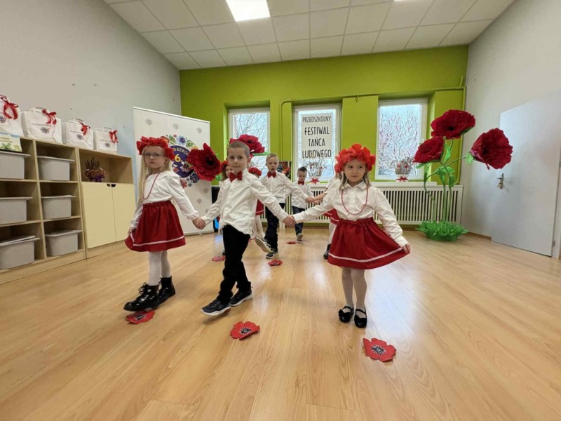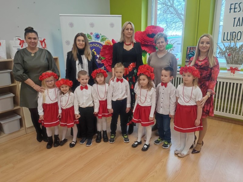DziewiÄcioro dzieci z naszego przedszkola, z Grupy FioĹki — Gniewko, Helenka, Oliwka, Maksymilian, Marcelina W., Marcelina S., Piotrek, Zuzia i Ania — wziÄĹo udziaĹ w miÄdzyprzedszkolnym konkursie organizowanym przez Przedszkole nr 6 w Ostrowie Wielkopolskim. Wydarzenie odbyĹo siÄ pod tytuĹem „Przedszkolny Festiwal TaĹca Ludowego”.