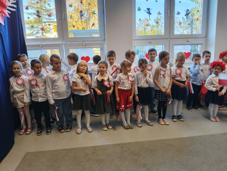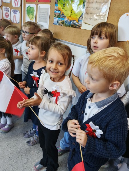 "SzkoĹa do Hymnu" - o godzinie 11:11 dzieci i pracownicy przedszkola przystÄ piĹy do uroczystego odĹpiewania Hymnu.