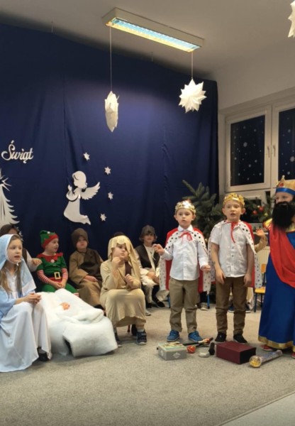 ByĹo wspĂłlne ozdabianie choinki, robienie stroikĂłw ĹwiÄ tecznych, zdobienie pierniczkĂłw oraz przedstawienie jaseĹkowe.