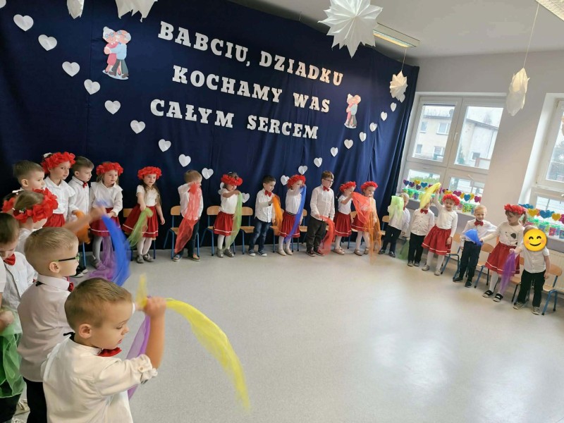Przedszkolaki goĹciĹy swoje Babcie oraz DziadkĂłw na uroczystoĹci z okazji ich ĹwiÄta. W kaĹźdej z grup przygotowaĹy program artystyczny: recytowaĹy wiersze, ĹpiewaĹy piosenki, taĹczyĹy oraz wrÄczyĹy wĹasnorÄcznie wykonane laurki i drobne upominki.